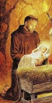 La navidad en Greccio en 1223, “unos quince días antes de la navidad del Señor, el bienaventurado Francisco le llamó, como solía hacerlo con frecuencia, y le dijo: «Si quieres que celebremos en Greccio esta fiesta del Señor, date prisa en ir allá y prepara prontamente lo que te voy a indicar. Deseo celebrar la memoria del niño que nació en Belén y quiero contemplar de alguna manera con mis ojos lo que sufrió en su invalidez de niño, cómo fue reclinado en el pesebre y cómo fue colocado sobre heno entre el buey y el asno». En oyendo esto el hombre bueno y fiel, corrió presto y preparó en el lugar señalado cuanto el Santo le había indicado”.
